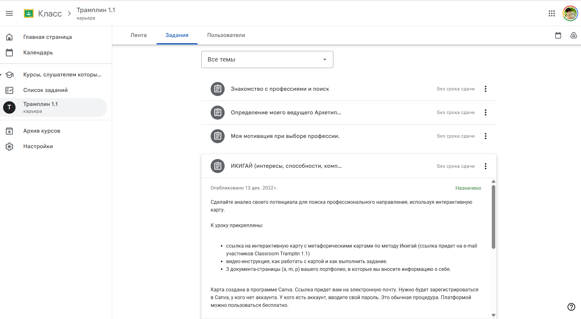 Koos kolleegi Olga Volkovaga lõime Google Classroomi keskkonnas karjääriteadlikkuse programmi TRAMPLIN jaoks veebipõhise õpikeskkonna: