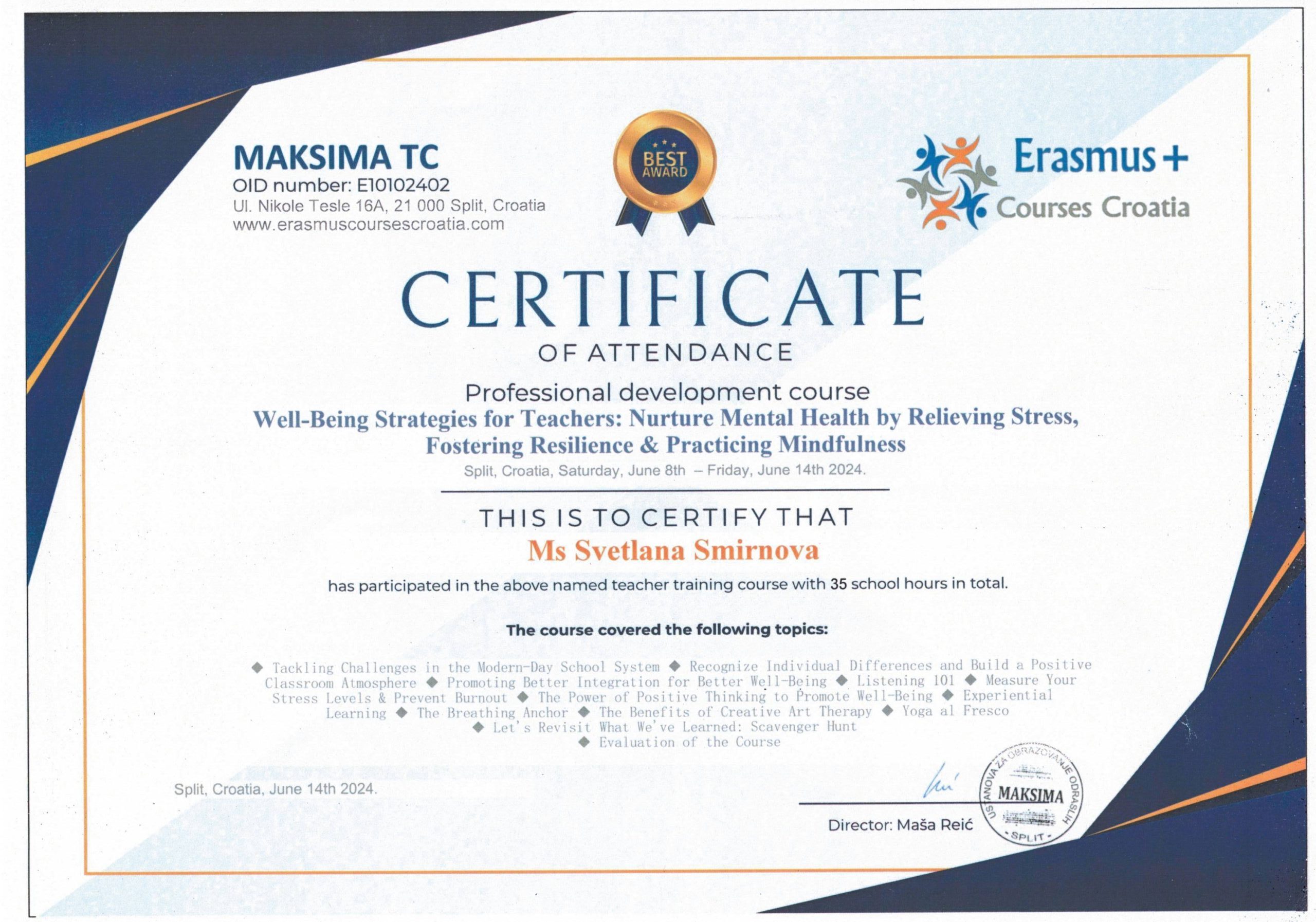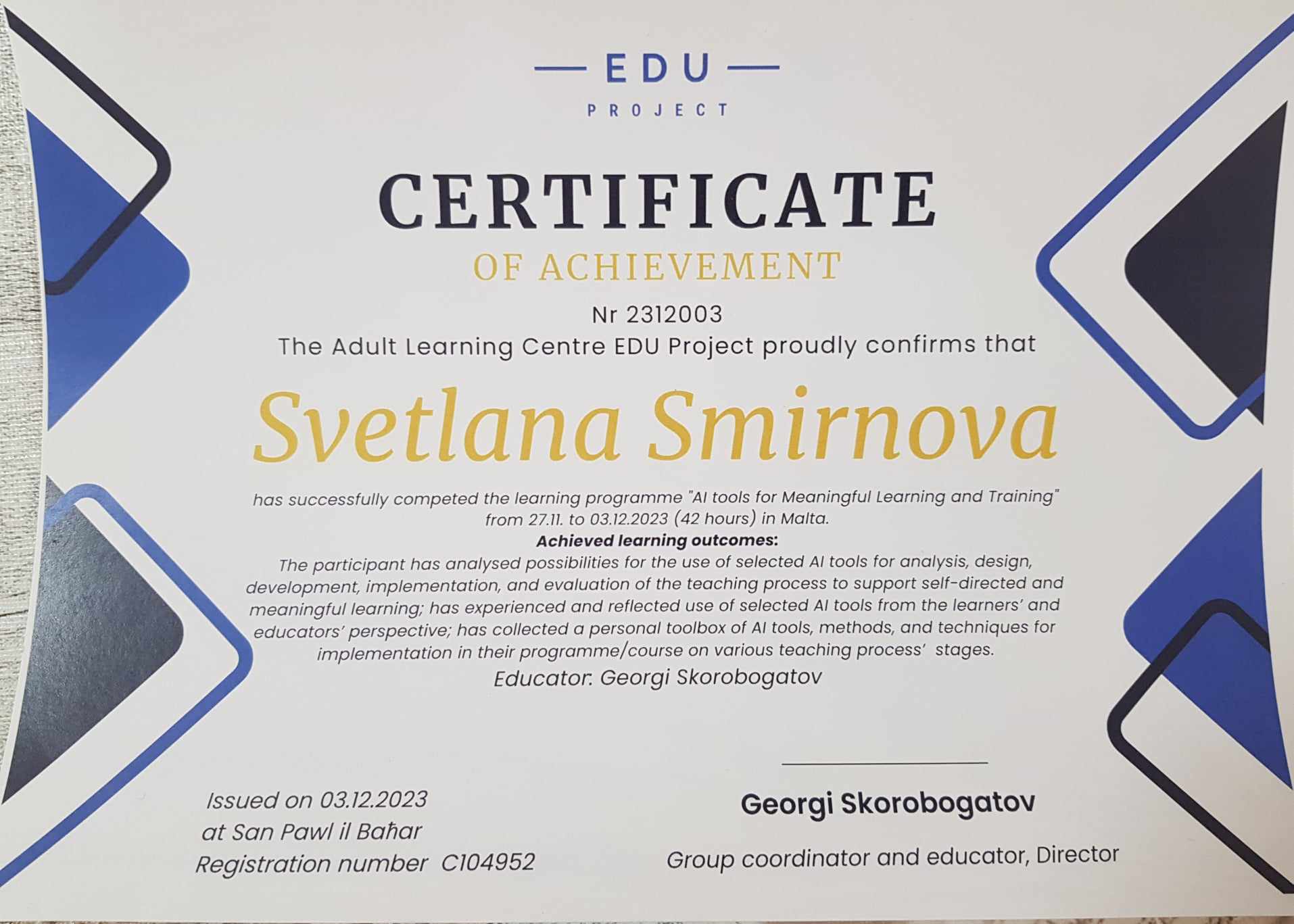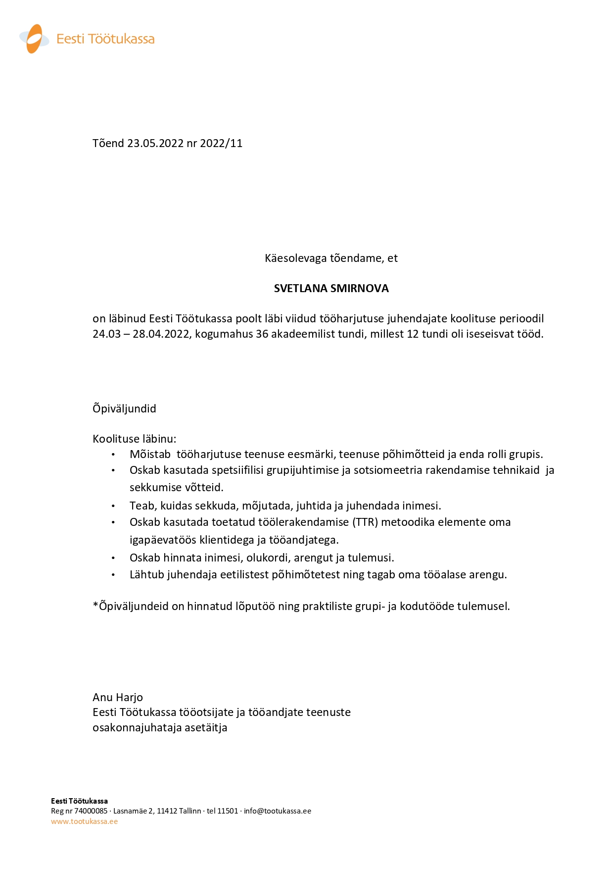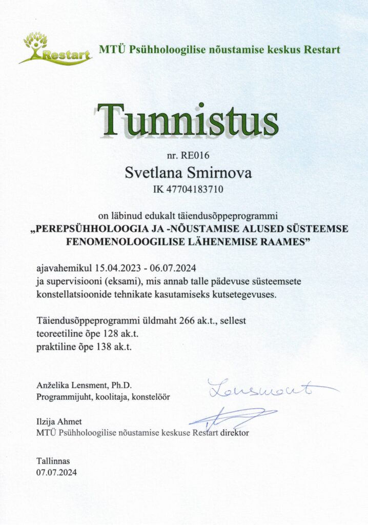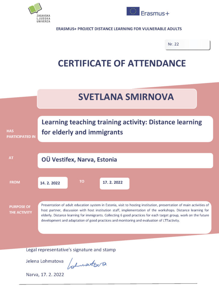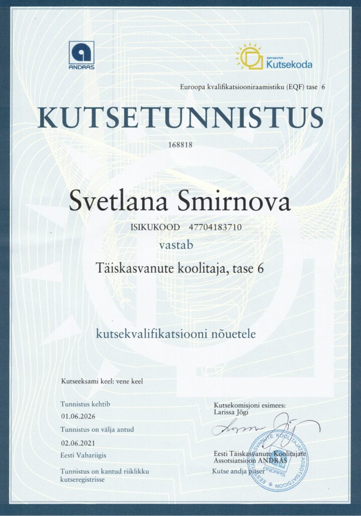 Täienduskoolituste, ümberõppe ja erinevate projektidega seotud sertifikaadid